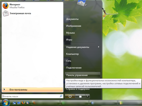 2. Нажмите кнопку "ПУСК"-"Панель управления", как показано на рисунке: