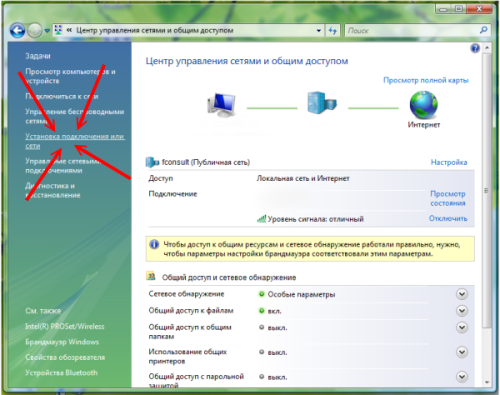 4. Щелкните по этому пункту меню и в открывшемся окне найдите "Установка подключения или сети":